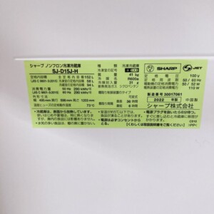 SHARP(シャープ)152L 2ドア冷蔵庫 SJ-D15J-H 2022年製
