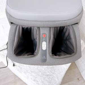 内蔵されたもみ玉は、脚部、ふくらはぎ、太もも、ヒップにかけてフィットし、エアーマッサージとローラーマッサージを組み合わせることで、心地よい刺激を与えます。特に座面下に内蔵されたマッサージユニットが体をしっかり支え、リラックスできるよう設計されています
