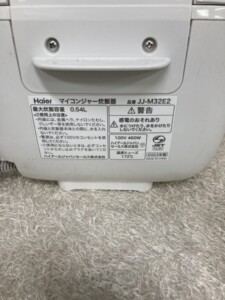 今回お引き取りした「JJ-M32E2」は、Haier(ハイアール)が展開する家庭用のマイコン式炊飯器です。3合炊きタイプで、少人数のご家庭や一人暮らしの方に最適なサイズ感です