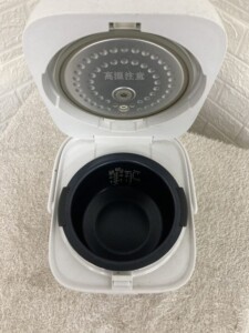 お品物の外観に目立つ傷や凹みなどはなくありませんでした。日常的な使用による軽度のホコリの付着はありましたが、全体的に清潔感があり、メンテナンスも行き届いていたようです。内釜にも焦げ付きや剥がれなどは見られず、まだまだ十分に使用可能なコンディションでした。