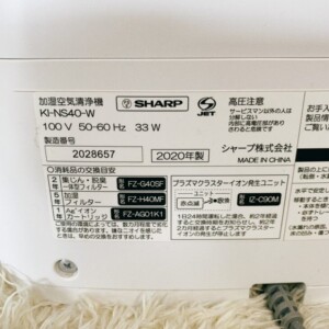 シャープ(SHARP)の加湿空気清浄機「KI-NS40-W」を出張買取いたしましたので、査定内容についてご紹介いたします。