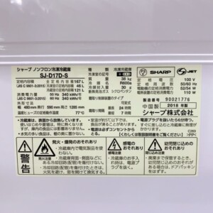 愛知県名古屋市中区にて、SHARP(シャープ)の冷凍冷蔵庫「SJ-D17D-S」2018年製の出張査定を行いました。
