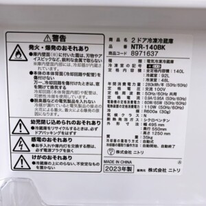 今回買取させていただいたのは、NITORIの冷蔵庫「NTR-140BK」です。この冷蔵庫は、サイズ感とデザインに優れ、使い勝手の良さが特徴です