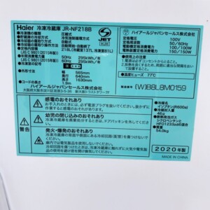 愛知県名古屋市中村区にて【Haier(ハイアール) 218L 冷凍冷蔵庫 JR‐NF218B 2020年製】を出張査定しました。