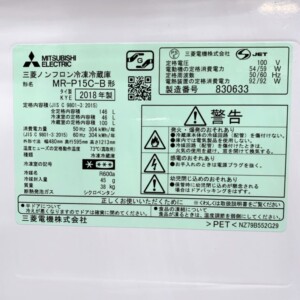 MR-P15C-Bは三菱のシンプルで人気のあるモデルですが、年式が2018年製とやや古く、外観に使用感が強いことから再販価値が低めと判断しました。庫内の状態は良好でしたが、全体のバランスを踏まえ、今回は無料引き取りとさせていただきました。リユース可能な状態であるため、資源として有効に活用される見込みです