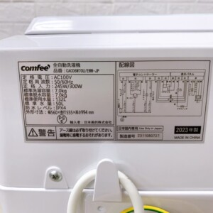 北海道札幌市白石区にて【comfee(コンフィ)7.0kg 全自動洗濯機 CAC06W70U 2023年製】を出張買取しました!