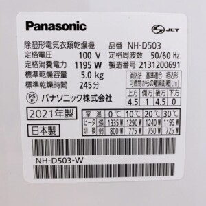 Panasonic(パナソニック)5.0キロ 電気衣類乾燥機 NH-D503 2021年製