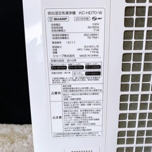 今回は、下記製品をご紹介します。SHARP(シャープ)除加湿空気清浄機 KC-HD70-W 2018年製