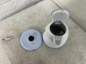 今回査定した商品は、外観・内部ともに全体的に使用感が見受けられました。ただし、動作確認では問題なく通電・加熱できることを確認しており、実用上は問題のないコンディションです。通電してすぐに加熱が始まり、お湯が短時間で沸騰することを確認済みです。