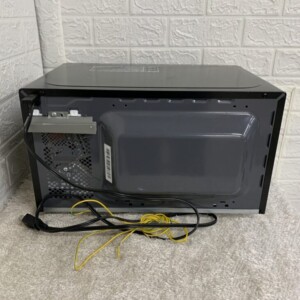 今回は2022年製と比較的新しいモデルでありながら、外観にはやや使用感が見られました。具体的には、本体の取っ手部分に細かい擦り傷があり、操作パネルにも若干の劣化(文字の薄れ)が確認されました。ただし、庫内は清潔な状態で、ニオイ残りや焦げつき、油汚れなどもありませんでした。動作確認も問題なく、加熱・解凍機能ともに正常に動作していることを確認しています。