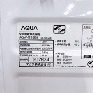 今回は福岡市早良区西新にて、AQUA(アクア)製の5.0kg全自動洗濯機「AQW-GS5E8」の出張買取にお伺いしました。一人暮らしの男性からのご依頼で、引っ越しに伴い家電の整理をされているとのことでした。