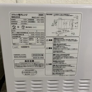 今回は福岡市中央区平尾にて、NITORI(ニトリ)の電子レンジ「BN520X(2022年製)」の出張買取にお伺いしました