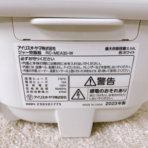 今回は、世田谷区奥沢にお住まいの一人暮らしの女性からのご依頼で、IRIS OHYAMA(アイリスオーヤマ)製炊飯器 RC-MEA30-W(2023年製)の出張買取にお伺いしました。単身用としても人気のある3合炊きモデルで、コンパクトながらも多機能な点が特徴の商品です。