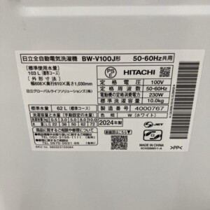 今回は茨城県 牛久市 柏田町にて、出張買取を行いました🚛先日、日立の全自動洗濯機「BW-V100J(2024年製)」を買取いたしました!