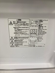 NITORI(ニトリ)106L 2ドア冷蔵庫 NTR-106WH 2021年製