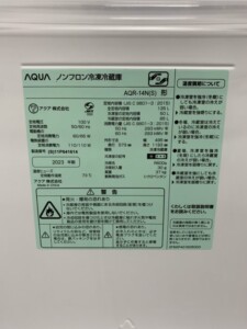 今回は福岡市南区高宮にて、AQUA(アクア)製 2023年製の2ドア冷蔵庫 AQR-14N(S)の出張買取にお伺いしました