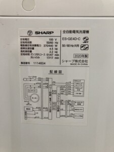 査定士として現地にお伺いし、商品の状態を丁寧に確認させていただきました。SHARP(シャープ)4.5キロ 全自動洗濯機 ES-GE4D-C 2020年製