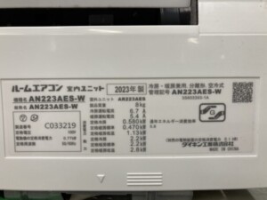 今回は大田区中央にて、ダイキン(DAIKIN)エアコン AN223AES-W(2023年製)の出張買取にお伺いしました