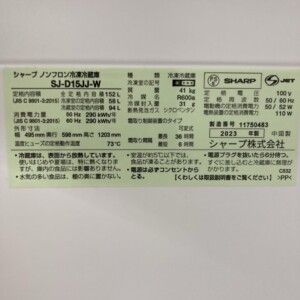 愛知県西尾市吉良町にて【 SHARP(シャープ)ノンフロン冷凍冷蔵庫 SJ‐D15JJ‐W 2023年製 】を出張買取いたしました。引っ越しで冷蔵庫を含む家電や家具などをまとめて見て欲しいとご依頼いただき行って参りました