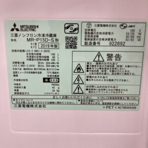 今回お引き取りしたMR-P15D-Sは、全体的に非常に綺麗な状態でした。外装には目立つ傷や凹みもなく、庫内も清潔に保たれており、嫌なニオイもありませんでした。
