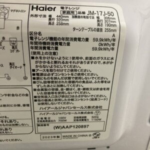 アイリスオーヤマ JM-17J-50 電子レンジの出張買取を行いました。