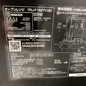 今回は小牧市小牧原新田にて、YAMAZEN(山善)の電子レンジ YRJ-F182TV(B)の出張買取にお伺いしました。2023年製と比較的新しいモデルで、シンプルな機能と使い勝手の良さが特徴の一台です。
