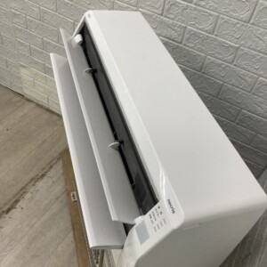 設置から約1年ほどの使用ということで、本体には目立つキズや汚れもなく、フィルターや吹き出し口も清掃が行き届いており、全体的に非常に清潔感のある美品でした。リモコンも動作良好で付属品も揃っており、査定において高評価のポイントとなりました
