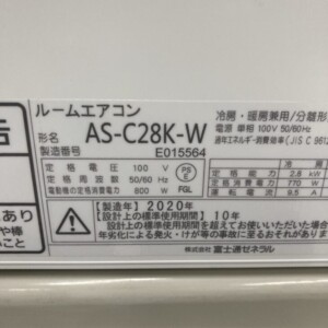 今回は小牧市大字二重堀にて、富士通のエアコン「AS-C28K-W(2020年製)」の出張買取にお伺いしました