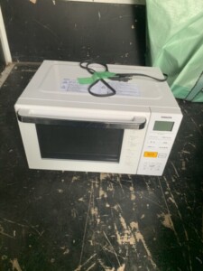 電子レンジは庫内に使用感があり、黒い焦げや汚れの跡がありました