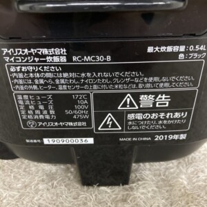 IRIS OHYAMA(アイリスオーヤマ)ジャー炊飯器 RC-MC30-B 2019年製