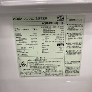 その場で査定から買取までをスムーズに対応いたしました。AQUA(アクア)126L 2ドア冷蔵庫 AQR-13K(S) 2021年製