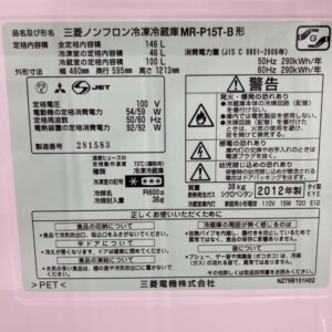 今回は稲沢市高御堂にて、三菱 (MITSUBISHI) の冷蔵庫 MR-P15R-B(2012年製)の出張買取にお伺いしました。ご依頼主様は、故人の遺品整理を進めておられるご家族の方で、アパート内に残された家電や家具などをまとめて片付けたいとのことでご連絡をいただきました