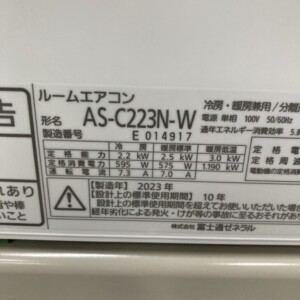 今回は瀬戸市西原町にて、FUJITSU(富士通)製エアコン AS-C223N-W(2023年製)の出張買取にお伺いしました。比較的新しいモデルで状態も良好だったため、高価査定となりました