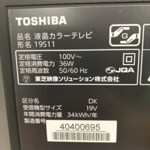 愛知県東海市へ出張買取 TOSHIBA 液晶テレビ 19S11 使用感ありのため無料引き取りとなりました