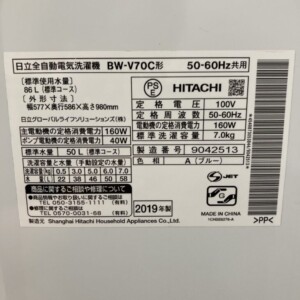 今回は小牧市小木にて、日立製の全自動洗濯機「BW-V70C(2019年製)」の出張買取にお伺いしました。お問い合わせ時からスムーズに日程を調整いただき、スピーディーな対応が可能となりました