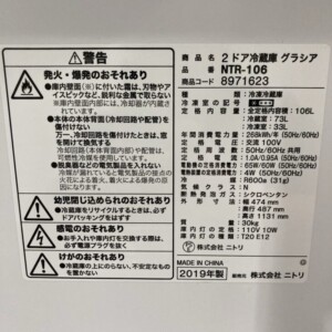 愛知県安城市にて ニトリの2ドア冷蔵庫 NTR-106(2019年製)を出張査定