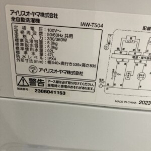 それでは詳しい査定内容をご覧ください。IRIS OHYAMA(アイリスオーヤマ)5.0キロ 全自動洗濯機 IAW-T504 2023年製