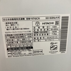 保管環境としては非常に良好でした。HITACHI(日立)7.0キロ 全自動洗濯機 BW-V70C 2019年製