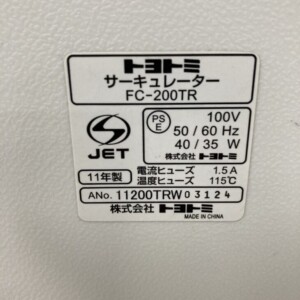 トヨトミ サーキュレーター FC-200TR 2011年製