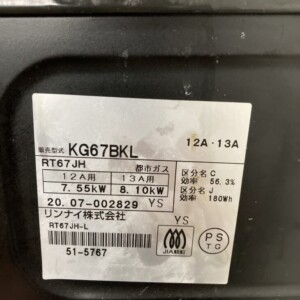 半田市瑞穂町へ出張買取 リンナイ KG67BKL 目立った傷のない良品で査定成立!