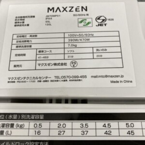洗浄・脱水機能ともに正常に稼働し、不具合は一切確認されませんでした。中古市場において、MAXZENブランドの洗濯機は、