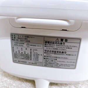 今回のご依頼は、お引っ越しに伴い大型家電の買取をまとめてお申し込みいただいたお客様からのご相談で、その中にこちらの炊飯ジャーも含まれておりました。NITORI(ニトリ)マイコン炊飯ジャー BN201WH 2023年製