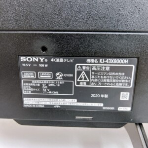 状態も良好だったため、最高価格でのご提示となりました。SONY(ソニー)43型4K液晶テレビ KJ-43X8000H 2020年製