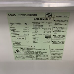 商品名: AQUA(アクア)201L 2ドア冷蔵庫 AQR-20M(S)