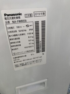 Panasonic(パナソニック)8.0㎏ 電気洗濯乾燥機 NA-FW80S6 2019年製