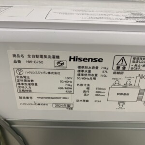 査定に至った背景などを詳しくご紹介いたします。Hisense(ハイセンス)7.5キロ 全自動洗濯機 HW-G75C 2024年製