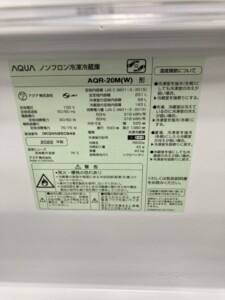 その一環として冷蔵庫の査定をご依頼いただきました。AQUA(アクア)201L 2ドア冷蔵庫 AQR-20M(W)2022年製