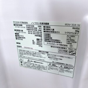 那須塩原市東小屋のマンションにお住まいのお客様宅へ出張査定に伺いました。IRIS OHYAMA(アイリスオーヤマ)299L 2ドア冷蔵庫 IRSN-30A-W 2023年製