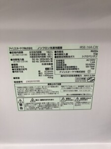 IRIS OHYAMAの2ドア冷蔵庫は、単身者や学生さんを中心に一定の需要があり、年式も2023年と新しいため、比較的高めの評価が可能でした。