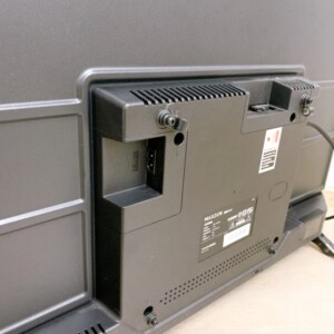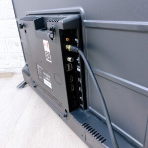 多くのテレビでは背面にうっすらとホコリが付着していることもありますが、今回の製品はそういった点も見受けられず、日常的に綺麗に使われていたことが分かります。付属品であるリモコンは純正品がしっかりと揃っており、ボタン部分の文字かすれや外れといった使用上の劣化もなし。